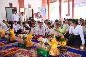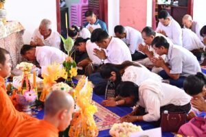 ពិធីសូត្រមន្តចម្រើនព្រះបរិត្តបានប្រព្រឹត្តទៅតាមគន្លងប្រពៃណីព្រះពុទ្ធសាសនាដើម្បីជាកិច្ចទទួលអំណរសាទរទេវតាឆ្នាំថ្មី ដែលនឹងយាងមកថែរក្សាទឹកដីនៃព្រះរាជាណាចក្រកម្ពុជាចាប់ពីថ្ងៃទី ១៤ .១៥ និង១៦ខែមេសា ឆ្នាំ២០២៥នាពេលដ៏ខ្លីខាងមុខនេះ។