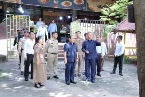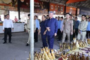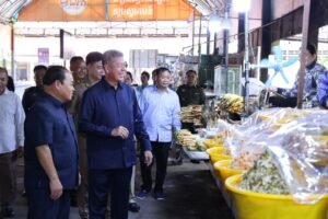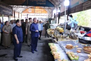 នាព្រឹកថ្ងៃទី៩ ខែមិថុនា ឆ្នាំ២០២៥ ឯកឧត្តម ម៉ក់ ពេជ្ជរិទ្ធ រដ្ឋលេខាធិការក្រសួងពាណិជ្ជកម្ម និងឯកឧត្តម គួច ចំរើន អភិបាល នៃគណៈអភិបាលខេត្តកណ្ដា រួមជាមួយអាជ្ញាធរស្រុកកៀនស្វាយ អញ្ជើញចុះពិនិត្យស្ថានភាពជាក់ស្ដែង និងសំណេះសំណាលជាមួយអាជីវករ កំពុងប្រកបរបរលក់ដូរនៅរមណីយដ្ឋានកៀនស្វាយក្រៅ។