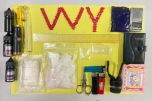 ១/ម្សៅក្រាមពណ៌សថ្លាសង្ស័យជាសារធាតុញៀន(ម៉ាទឹកកក) ចំនួន៧កញ្ចប់(ធំ២មធ្យម២ តូច៣)ទម្ងន់១២០.០៩ក្រាម។