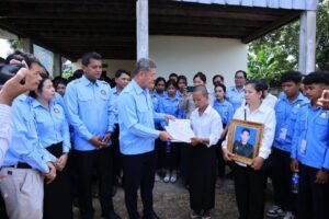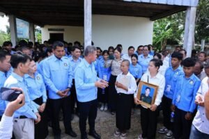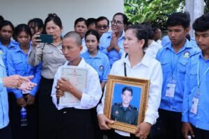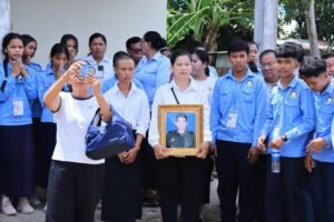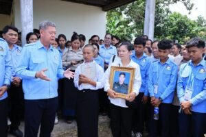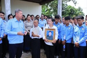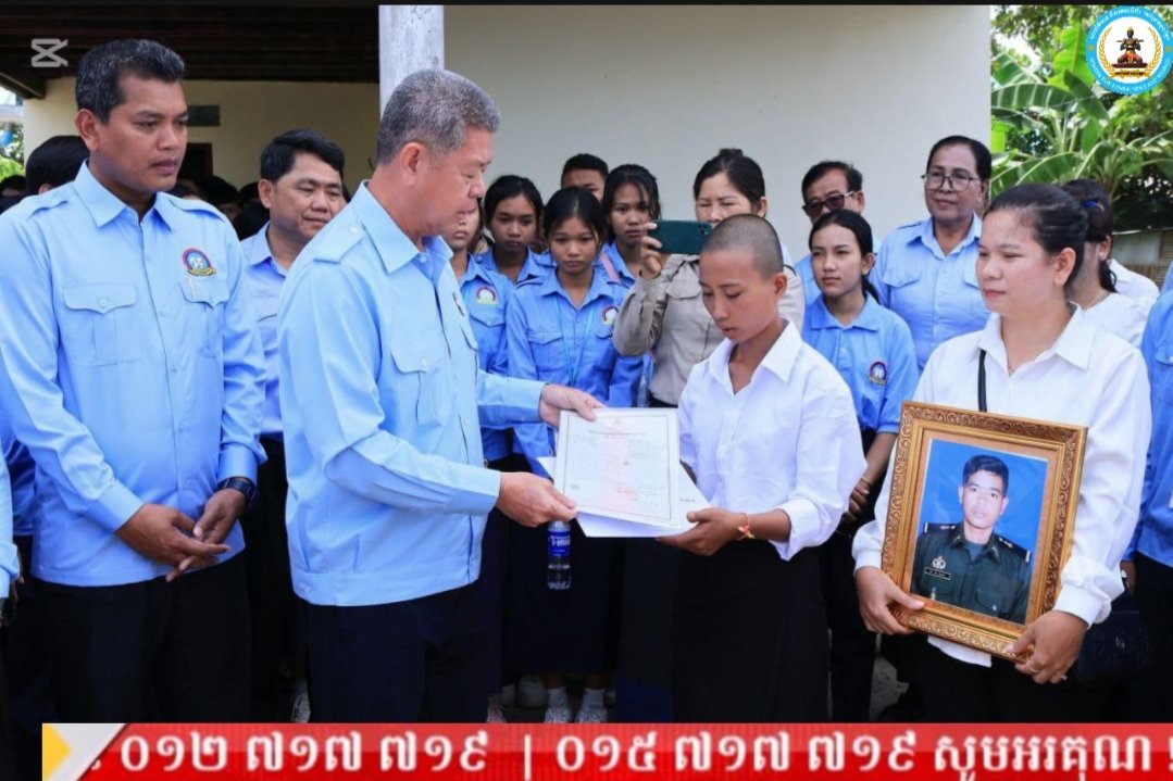 (ខេត្តកណ្ដាល)ព្រឹកថ្ងៃទី០៦ ខែសីហា ឆ្នាំ២០២៥ ឯកឧត្ដម គួច ចំរើន អភិបាល នៃគណៈអភិបាលខេត្តកណ្ដាល និងជាប្រធាន (ស.ស.យ.ក) ខេត្តកណ្ដាល បាននាំយកថវិកាឧបត្ថម្ភរបស់ ឯកឧត្តម ហ៊ុន ម៉ានីប្រធានសហភាពសហព័ន្ធយុវជនកម្ពុជា (ស.ស.យ.ក.) ចំនួន៤.០០០.០០០ រៀលនិងប្លង់ដី ប្រគល់ជូន ភរិយាសពព្រឹន្ទបាលទោ រិន វាសនា នាយរងក្រុមទី២ កងអនុសេនាតូចដឹកជញ្ជូន វរសេនាតូច ៣៩៣ កងពលតូចអន្តរាគមន៍លេខ ៩ នៃកងពលធំអន្តរាគមន៍លេខ ៣ ដែលបានពលីជីវិតនៅលើសមរភូមិប្រយុទ្ធទិសមុំបី ខេត្តព្រះវិហារ កាលពីថ្ងៃអាទិត្យទី២៧ ខែកក្កដា ឆ្នាំ២០២៥ ក្នុងជន្មាយុ ២៨ឆ្នាំ នៅភូមិត្រពាំងត្រាច ឃុំដំណាក់អំពិ់ល ស្រុកអង្គស្នួល ខេត្តកណ្តាល។