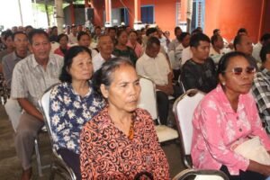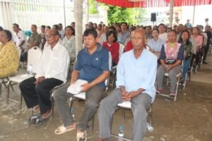 លោកមេឃុំបានលើកឡើងបន្តទៀតថា!ថ្ងៃនេះឃុំភូមិធំមានកម្មវិធីបិទផ្សាយជាសាធារណៈនូវឯកសារនៃការវិនិច្ឆ័យក្បាលដីចំនួន០២ភូមិគឺ