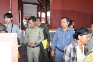 ក្រោមអធិបតីភាពលោកស៊ុម ធន់ អភិបាលរងស្រុកកៀនស្វាយជាតំណាងលោកឡូវសុខសានអភិបាលស្រុកកៀនស្វាយ.លោកព្រំ ឆាតអនុប្រធានមន្ទីរដែនដីនគររូបនីយកម្មខេត្តកណ្តាល.លោក កេត ផលប្រធានការិយាល័យភូមិបាលស្រុកកៀនស្វាយ.លោកសឹង្ហ ធាប្រធានការិយាល័យភូមិបាលក្រុងតាខ្មៅនិងលោកមាន ណាតមេឃុំភូមិធំស្រុកកៀនស្វាយនិងលោកលោកស្រីមេភូមិ។