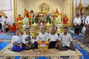 ពិធីបុណ្យអង្គដង្ហែកឋិនទានប្រទស្សិណ០៣ជុំព្រះវិហររួចហើយសមាទានសីលវេរអង្គកឋិនប្រគេនព្រះសង្ឃជាកិច្ចបញ្ចប់កម្មវោធីបុណ្យ។