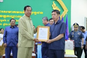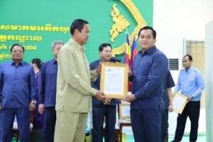 ខេត្តកណ្តាល៖ ឯកឧត្ដម នូ សាខន ប្រធានក្រុមប្រឹក្សាខេត្តកណ្ដាល និងឯកឧត្ដម គួច ចំរេីន អភិបាល នៃគណៈអភិបាលខេត្តកណ្ដាល នៅព្រឹកថ្ងៃទី១២ ខែវិច្ឆិកា ឆ្នាំ២០២៥នេះ បានអញ្ជេីញចូលរួម ក្នុងពិធីប្រកាសសមាគមអតីតយុទ្ធជន និងនិវត្តន៍ជន ខេត្តកណ្តាល ក្រោមអធិបតីភាព ឯកឧត្តម នាយឧត្តមសេនីយ៍ កិត្តិសង្គហបណ្ឌិត គន់ គីម ទេសរដ្ឋមន្ត្រី អនុប្រធាន និងជាអគ្គលេខាធិការ គណៈអចិន្ត្រៃយ៍ គណៈកម្មាធិការកណ្តាល នៃសមាគមអតីតយុទ្ធជន និងនិវត្តជនកម្ពុជា។ តាមសេចក្តីសម្រេចរបស់សមាគមអតីតយុទ្ធជនកម្ពុជា ឯកឧត្ដម គួច ចំរេីន អភិបាល នៃគណៈអភិបាលខេត្តកណ្ដាល ត្រូវបានគណៈអចិន្ត្រៃយ៍ គណៈកម្មាធិការកណ្តាល ផ្តល់នូវសេចក្តីទុកចិត្ត និងជឿជាក់ប្រគល់ភារកិច្ច ជាប្រធានគណៈកម្មាធិការសមាគមអតីតយុទ្ធជន និងនិវត្តជនកម្ពុជា ខេត្តកណ្តាល។