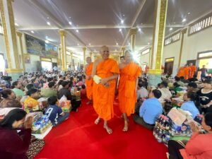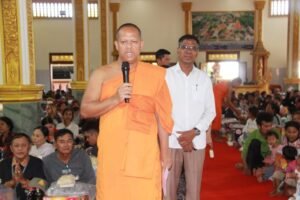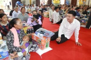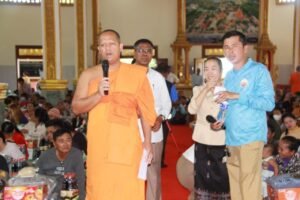 ព្រះវិជ្ជានុរ័ក្ខវិញាណខឹម សុផនចៅអធិការវត្តស្លាកែកនិងជាអនុគណស្រុកកៀនស្វាយចែកអំណោយដល់ក្រុមគ្រួសារវិរៈកងទ័ពនិងប្រជាពលរដ្ឋភៀសសឹកជាង៥០០គ្រួសារ!