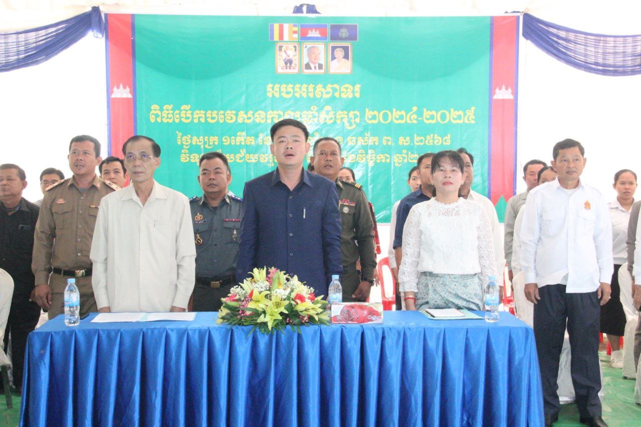 ស្រុកកៀនស្វាយ៖ នាព្រឹកថ្ងៃទី១ ខែវិច្ឆិកា ឆ្នាំ២០២៤ នៅវិទ្យាល័យជ័យវរ្ម័នទី៧ ក្នុងឃុំដីឥដ្ឋ លោក អ៊ូ ឈាង ប្រធានក្រុមប្រឹក្សាស្រុកកៀនស្វាយ រួមជាមួយលោក ឡូវ សុខសាន អភិបាល នៃគណៈអភិបាលស្រុកកៀនស្វាយ បានអញ្ជើញជាអធិបតីក្នុងពិធីបើកបវេសនកាលជានិមិត្តរូប ថ្នាក់ស្រុក ឆ្នាំសិក្សា២០២៤-២០២៥។