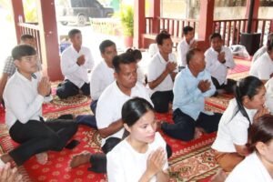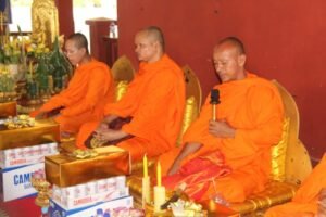 បាននិមន្តព្រះសង្ឃធ្វើកិច្ចនមស្ការព្រះរតនត្រ័យថ្វាយគ្រឿងសក្ការបូជាទេយ្យទាននិងទេយ្យវត្ថុដល់ព្រះសង្ឃព្រមទាំងនិមន្តព្រះសង្ឃសូត្រមន្តចម្រើនព្រះបរិត្តពុទ្ធជ័យមង្គលសិរីសួស្តីវិបុលសុខសមាទានសីលទៅតាមគន្លងទំនៀមទម្លាប់ប្រពៃណីខ្មែរនិងព្រះពុទ្ធសាសនា។ ព្រះសង្ឃបាននិមន្តប្រោះព្រំទឹកមន្តដើម្បីបណ្តេញគ្រោះចង្រៃទាំងពួងផងដែរ។