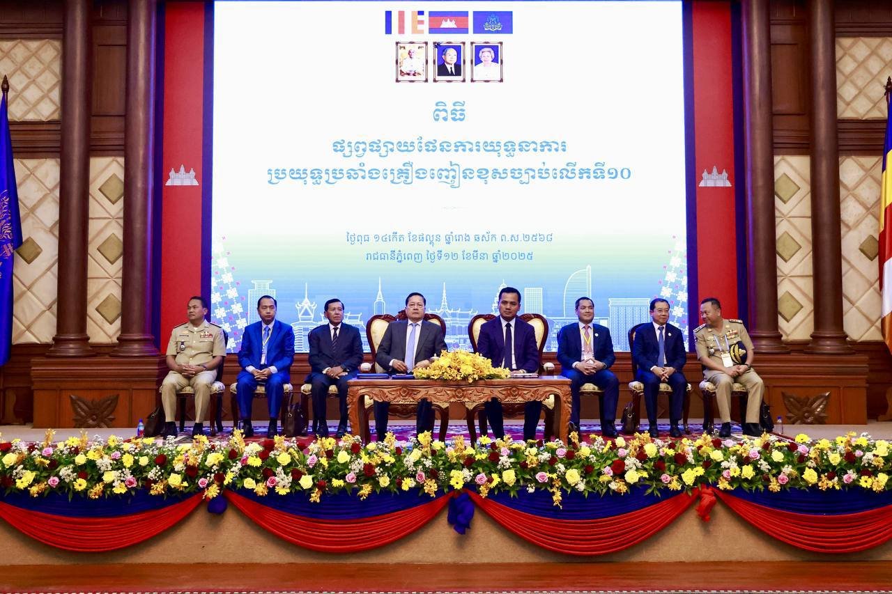 នៅរសៀលថ្ងៃទី១២ ខែមីនា ឆ្នាំ២០២៥ នេះ ឯកឧត្តមអភិសន្តិបណ្ឌិត ស សុខា ឧបនាយករដ្ឋមន្ត្រី រដ្ឋមន្ត្រីក្រសួងមហាផ្ទៃ និងជាអនុប្រធានអាជ្ញាធរជាតិប្រយុទ្ធប្រឆាំងគ្រឿងញៀន បានអញ្ជើញជាអធិបតីជាមួយឯកឧត្តមសន្តិបណ្ឌិត នេត សាវឿន ឧបនាយករដ្ឋមន្ត្រី ប្រធានអាជ្ញាធរជាតិប្រយុទ្ធប្រឆាំងគ្រឿងញៀន ពិធីសន្និបាតបូកសរុបលទ្ធផលការងារឆ្នាំ២០២៤ និងលើកទិសដៅការងារឆ្នាំ២០២៥ របស់អាជ្ញាធរជាតិប្រយុទ្ធប្រឆាំងគ្រឿងញៀន និងផ្សព្វផ្សាយផែនការយុទ្ធនាការប្រយុទ្ធប្រឆាំងគ្រឿងញៀនខុសច្បាប់ លើកទី១០ នៅសាលប្រជុំអគារ S នៃទីស្តីការក្រសួងមហាផ្ទៃ។